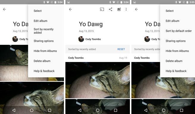 Riguardo le migliorie del modo per ordinare gli album esistenti, dopo l’apertura di un album è ora possibile modificare facilmente la modalità predefinita in "Aggiunti di recente", che permette di ordinare le foto in base a quando sono state aggiunte all’album.