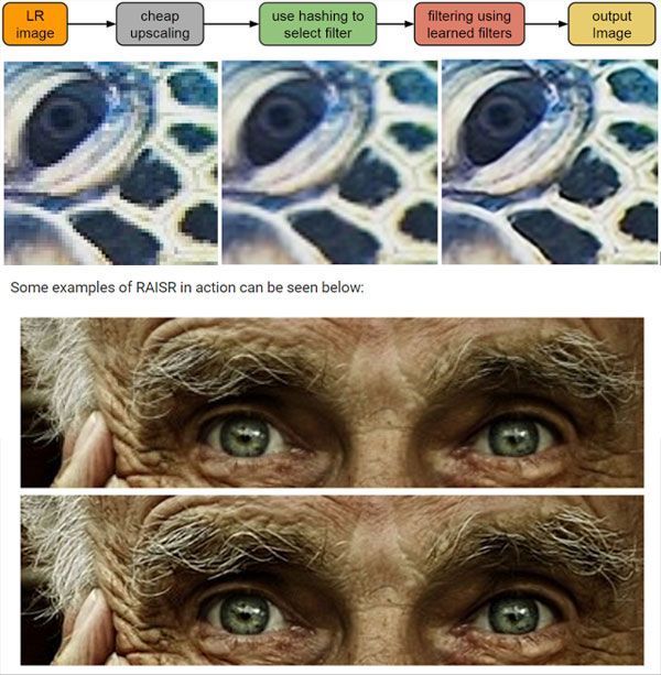 Con RAISR viene introdotta una tecnica che incorpora l’apprendimento automatico per produrre versioni ad alta qualità di immagini a bassa risoluzione.