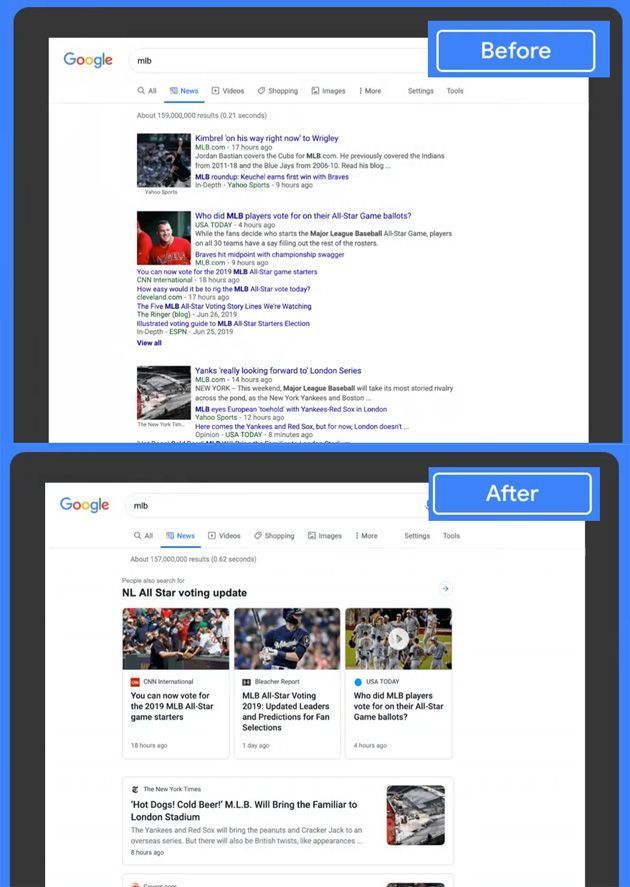 A seguire un’anteprima di come verranno mostrati i risultati nella aggiornata scheda Notizie in Ricerca.