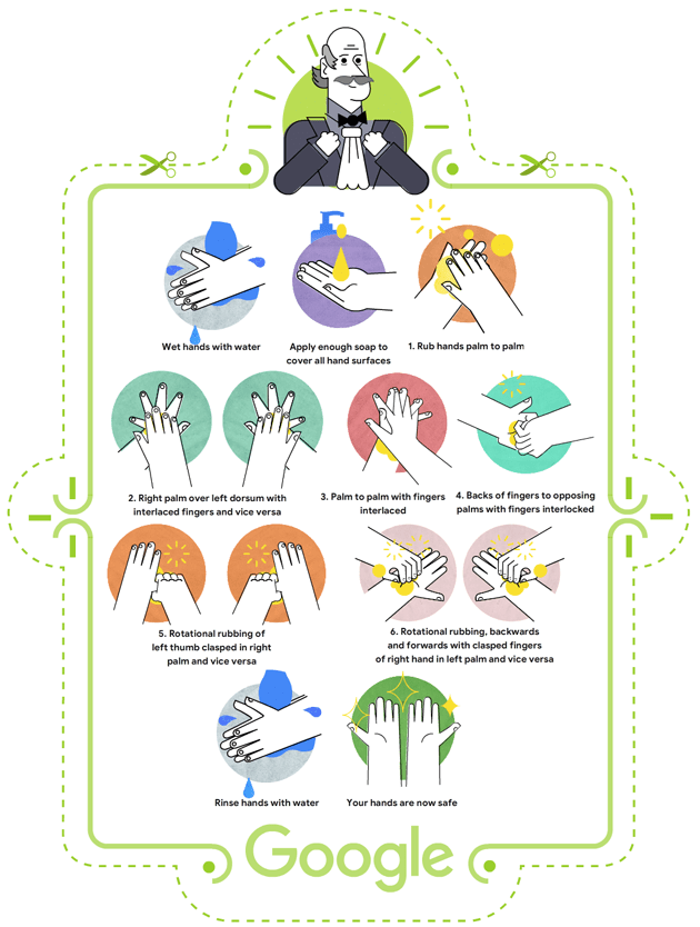 Non solo il doodle dedicato al primo giorno di Primavera si può vedere nella homepage di Google il 20 marzo 2020, c’è anche quello dedicato alla raccomandazione ufficiale dell’Organizzazione mondiale della sanità su come lavarsi correttamente le mani. Google vuole così ribadire a tutti coloro che utilizzano il suo motore di ricerca l’importanza di ‘lavarsi bene le mani’, una delle cose da fare in questo periodo di emergenza dal nuovo coronavirus COVID-19 per contribuire ad evitare il contagio. Nel doodle, Google ha rappresentato Ignác Fülöp Semmelweis, medico ungherese ampiamente riconosciuto come la prima persona a scoprire i benefici medici del lavaggio delle mani. Premendo il doodle viene avviato un video che spiega, tramite animazioni, come è meglio lavarsi le mani.