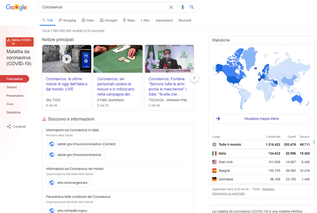 Esempio di una ricerca ‘Coronavirus’ su Google