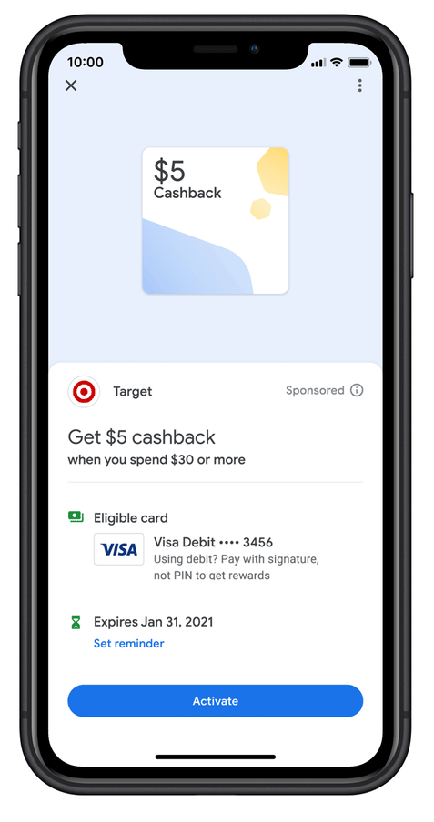 Google Pay può anche aiutare a risparmiare denaro e riscattare le offerte senza far perdere tempo nel ritagliare coupon o copiare e incollare codici promozionali. Le offerte dai marchi partner (come Burger King, Etsy, REI Co-op, Sweetgreen, Target, Warby Parker) vengono visualizzate direttamente dentro l’app e vengono automaticamente applicate quando un pagamento idoneo video effettuato nel negozio o sito web di riferimento.