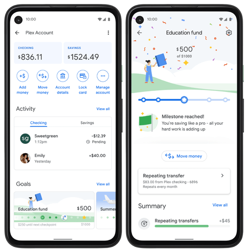 Google sta collaborando con istituti finanziari di fiducia per creare Plex, un nuovo conto bancario per dispositivi mobili integrato in Google Pay. I conti Plex saranno offerti da banche e circuiti di credito, senza commissioni mensili, spese di scoperto o requisiti di saldo minimo. A partire dal 2021, 11 banche e circuiti di credito negli Stati Uniti inizieranno a offrire conti Plex in Google Pay. Riguardo la disponibilità in altri paesi al momento non ci sono informazioni.