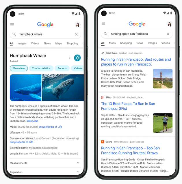 Qui sopra è possibile vedere come cambia il design della pagina dei risultati delle ricerche su Google nei dispositivi mobili, cambiamento che alcuni utenti potrebbero aver già notato ma il cui rilascio sarà graduale nelle prossime settimane. Niente aggiornamenti o azioni richieste dagli utenti: il cambio della grafica è automatico lato server, chi ancora non lo vede un giorno entrerà in Google e noterà il cambiamento.