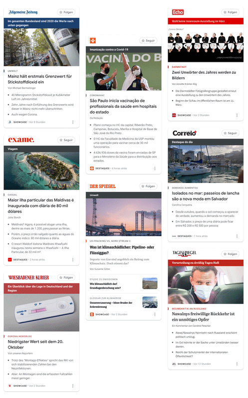 Altri esempi di schede da Google News Showcase