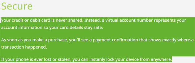 In particolare, il produttore taiwanese ha fatto sapere che alcun dato della carta sarà memorizzato, e che ad ogni utente sarà assegnato un "numero di conto virtuale" che dovrebbe mantenere criptati i dati dati della carta.
