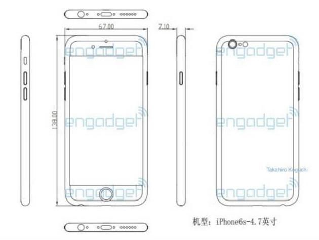 I disegni tecnici ottenuti dalla redazione giapponese di Engadget confermano diverse indiscrezioni trapelate sul web nei mesi passati, in particolare le linee di design molto simili all’attuale iPhone 6. Ma ci sono alcune importanti differenze: le dimensioni della scocca dell’iPhone 6S infatti saranno di 138 mm, 67 mm e 7.1 mm, rispettivamente per l’altezza, larghezza e spessore. Il device sarà quindi un po’ più spesso, e due sono le possibili motivazioni: Apple potrebbe aver realizzato il melafonino con un materiale più resistente, evitando così un nuovo "BendGate". E inoltre, lo schermo potrebbe supportare la tecnologia Force Touch, vale a dire il touch sensibile alla pressione. Tale tecnologia, già vista nell’Apple Watch e negli ultimi modelli di computer Macbook, garantisce la possibilità di interagire in maniera innovativa con le app di iOS, ma come rovescio della medaglia aumenta leggermente lo spessore del pannello LCD.