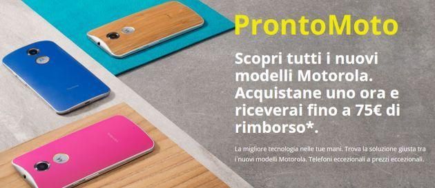 L’iniziativa Cash Back Pronto Moto permette di ricevere indietro fino a 75 euro in base ai diversi prodotti Motorola acquistati, tra smartphone e smartwatch.