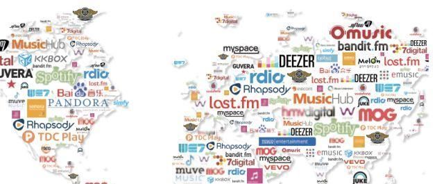 A livello globale si contano un totale di 400 servizi musicali per un totale di 43 milioni di tracce musicali in licenza.