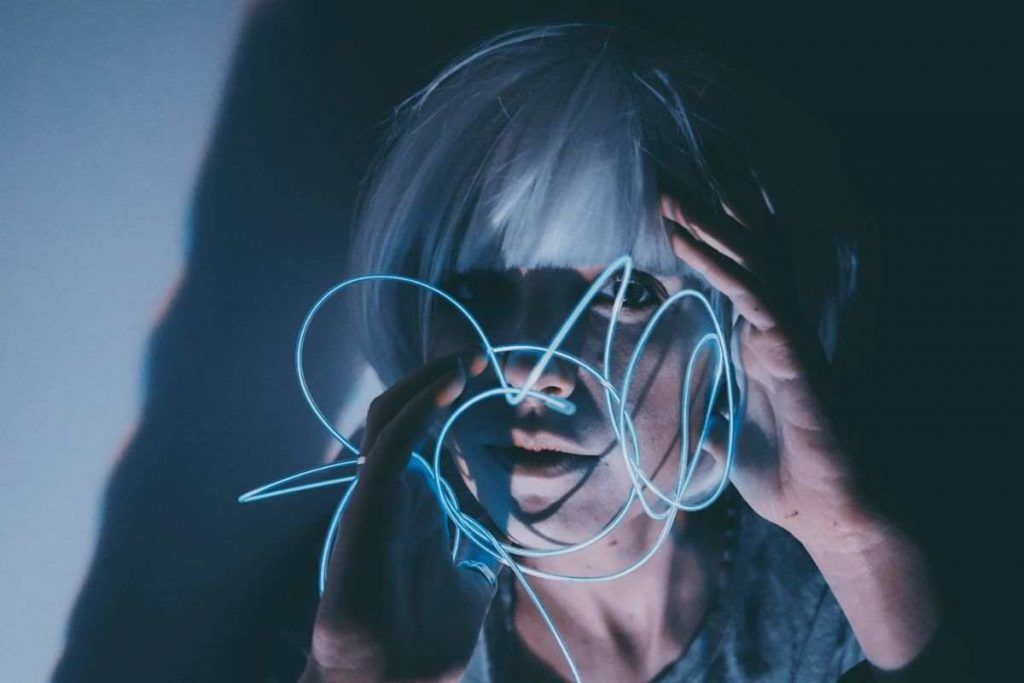 Donna con luci neon