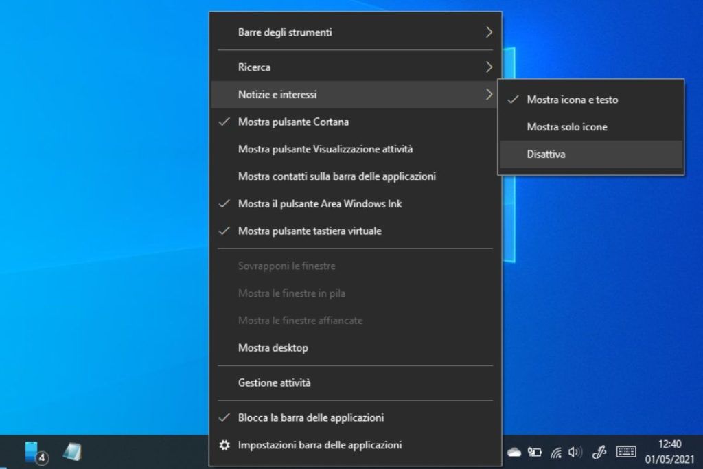 A questo punto non dovrai fare altro che cliccare sulla barra delle applicazioni con il pulsante destro del mouse e, poi, sulla voce delle Impostazioni della barra delle applicazioni. Di fianco a ogni singola applicazione o funzionalità Windows dovrai spostare la levetta da ON a OFF per rimuover l’icona.
