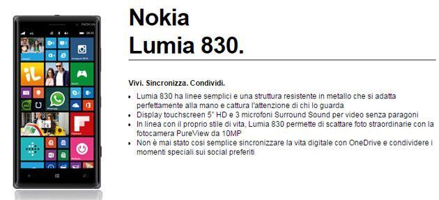 Per gli appassionati di Windows Phone la novità è rappresentata da Nokia Lumia 830, smartphone dotato di display LCD da 5 pollici IPS con risoluzione HD a 720p, una fotocamera da 10MP PureView con ottica Carl Zeiss e OIS, chipset Snapdragon 400 con 1GB di RAM e Windows Phone 8.1. Nokia Lumia 830 è disponibile senza anticipo con gli Abbonamenti TOP Unlimited e TOP Unlimited Plus e con la Ricaricabile Scegli15.