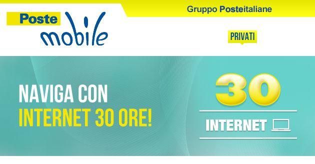 Con PosteMobile e' possibile attivare l'opzione Internet 30 Ore. Con meno di 10 euro al mese si ha un monte di 30 ore da sfruttare alla velocita' massima di 14,4 Mbps. L'offerta puo' essere usata sia con la chiavetta USB oppure attraverso lo smartphone, usando quest'ultimo come modem.