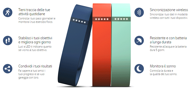 Vodafone e FitBit hanno stretto una partnership attraverso la quale l’operatore italiano vende in promozione nel suo shop online il dispositivo indossabile FitBit Flex al prezzo scontato di 69,99 euro invece di 129,99 euro.