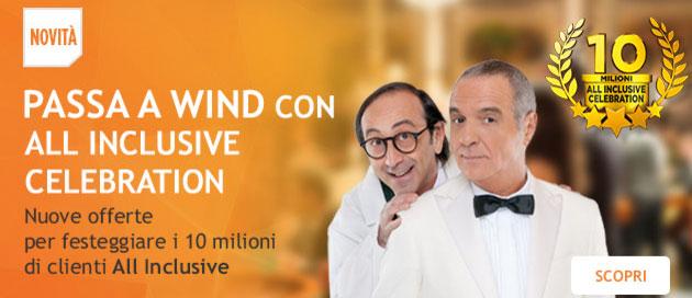 Wind per festeggiare i 10 milioni di clienti All Inclusive ha presentato nuove promozioni esclusive sia per i nuovi clienti che passano a Wind sia per i gia’ clienti All Inclusive.