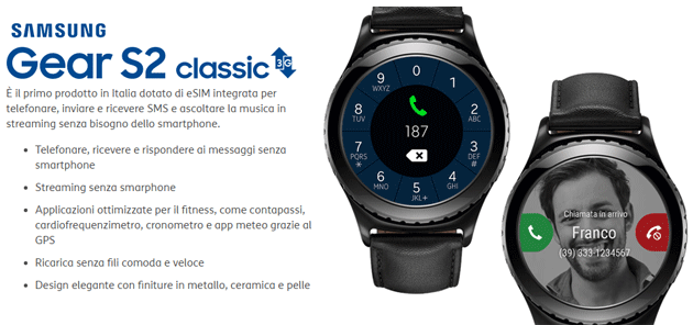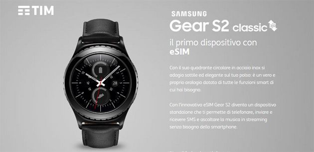 Samsung dal 12 marzo negli Stati Uniti vende una versione 3G/cellular del suo smartwatch Gear S2 classic, che di fatto è il primo dispositivo indossabile al mondo ad essere dotato del supporto per la nuova eSIM certificata GSMA, vale a dire che l’utente è libero cambiare operatore quando vuole senza restrizioni. Si tratta di una versione diversa dal tipo di SIM che si puo’ trovare nel modello Gear S2 3G uscito lo scorso anno. A partire dal mese di Agosto 2016, il Gear S2 classic 3G debutta in Italia in esclusiva con TIM.