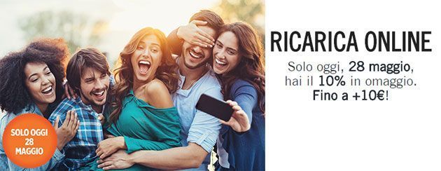 Solo nella giornata di Lunedi 28 Maggio 2018 i clienti Wind che ricaricano online ricevono il 10 per cento in più di ricarica omaggio.