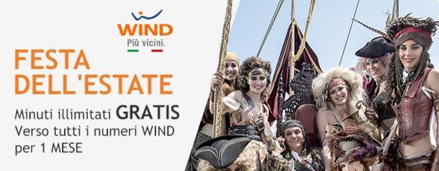 La promozione ‘Festa dell’Estate’ di Wind è attivabile esclusivamente nei Negozi Wind fino al 17 luglio 2016 da tutti i clienti Wind, non prevede costo di attivazione e ha una durata di 30 giorni, al termine dei quali si disattiva automaticamente.