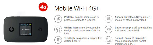 Vodafone dal mese di Maggio 2018 ha tolto dal proprio catalogo – almeno online – la Internet Key Mobile Wi-Fi R226Z, la prima Mobile-Wifi di Vodafone con supporto della tecnologia 4G+, ingrado quindi di raggiungere una velocità fino a 225 Mega in download.