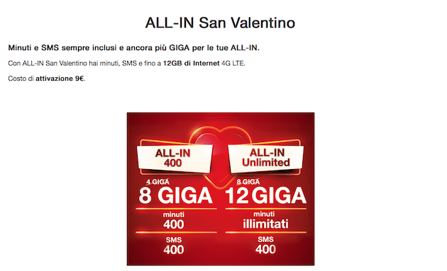 Le nuove All In San Valentino Edition si possono attivare tramite il sito web ufficiale dell’operatore, tramite applicazione Tre per i già clienti, tramite call center chiamando il 133 oppure ancora in qualsiasi negozio Tre.
