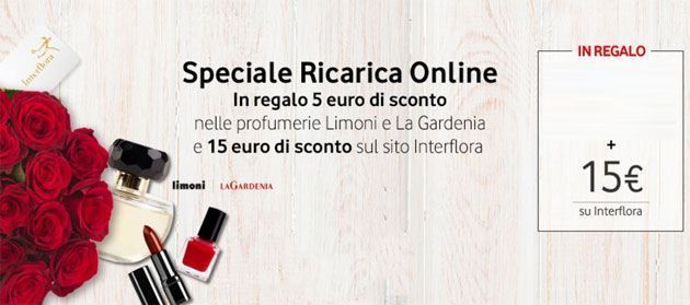 Dal 1 al 14 febbraio 2017, Vodafone ha attivato uno speciale concorso a premi dedicato a San Valentino tramite il quale effettuando una ricarica si puo’ ricevere un buono sconto da utilizzare su interflora.it.