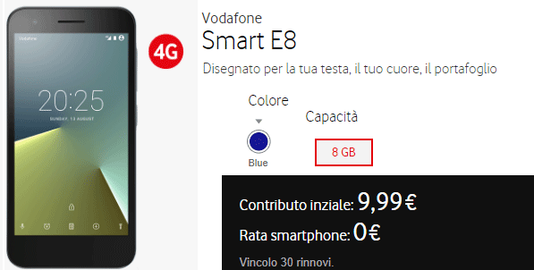 – Vodafone Smart E8 a 9,99 euro (sconto di 90 euro)
