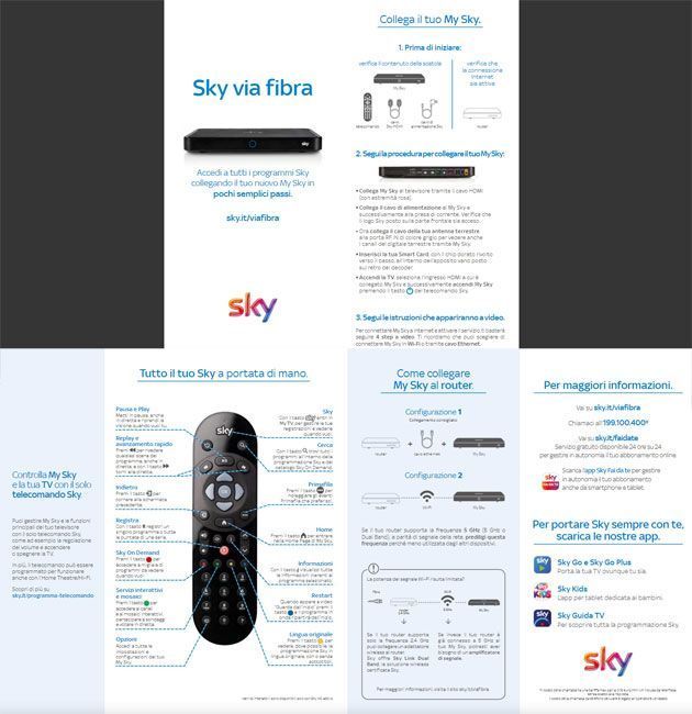Come funziona? Con Sky via fibra si collega il decoder My Sky alla rete internet di casa per avere accesso ai contenuti (oltre 60 canali) e alla tecnologia Sky (HD, Sky On Demand, My Sky, Sky Go Plus e Sky Kids), senza interventi fuori o dentro casa. Collegando l’antenna a My Sky anziché alla TV, è possibile usare le funzionalità My Sky come Pausa in diretta o Registra anche sui canali del digitale terrestre.