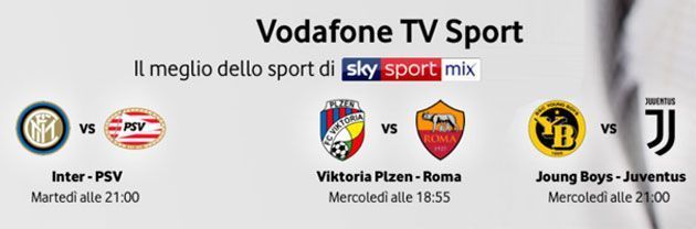 Grazie alla collaborazione con Sky, il canale Sky Sport Mix HD su Vodafone TV trasmette 4 partite per ogni turno del girone di qualificazione di UEFA Champions League, di cui almeno due italiane. Al termine dei match spazio ad approfondimenti post partita, con tutti i goal e le interviste ai protagonisti con i talent di Sky.
