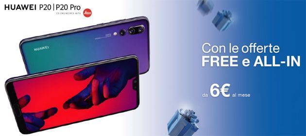 Per questo Natale 2018 chi è interessato ad acquistare un nuovo Huawei P20 o Huawei P20 Pro puo’ fare suo uno di questi smartphone con una offerta FREE o ALL-IN di 3 pagandolo da 6 euro al mese. Questo è cio’ che dice la campagna promozionale, infatti i "6 euro" fanno correttamente riferimento al solo costo dello smartphone pagato a rate ma ci sono altri costi da sostenere, come il canone dell’offerta abbinata ed eventuali anticipi e maxi rata finale.