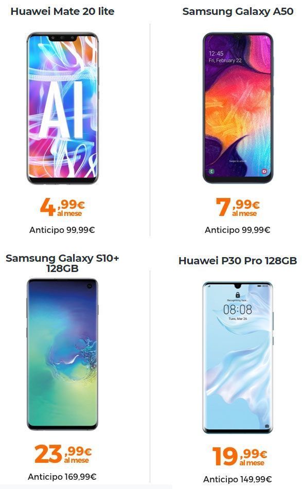La promozione riguarda Huawei Mate20 lite, Huawei P30 Pro 128GB, Samsung Galaxy S10+ e Samsung Galaxy A50.