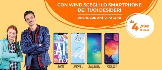 Fino al 16 giugno 2019 Wind ha attivato la promozione "Con Wind scegli lo smartphone dei tuoi desideri da 4,99 euro al mese, anche con anticipo zero" attraverso cui l’operatore propone quattro smartphone top di gamma con pagamento rateale, da 4,99 a 23,99 euro al mese, e con anticipo da 49,99 euro a 169,99 euro.