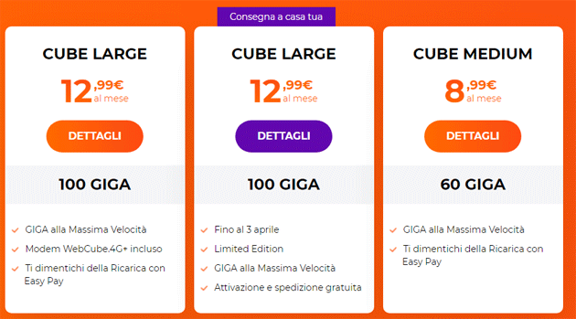 • CubeLarge Limited Edition (fino al 3 aprile): 100 Giga a 12,99 euro al mese