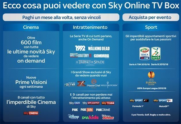 Per maggiori informazioni sul servizio, visita Sky Online.