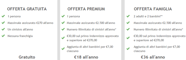 Chi ha acquistato l’offerta Premium o Famiglia, la polizza prevede una franchigia di Euro 30,00. Questo è l’importo che bisogna pagare nel caso la richiesta di indennizzo vada a buon fine; tale importo verrà dedotto dall’ammontare che verrà rimborsato. La franchigia verrà applicata e trattenuta solo sulla prima richiesta approvata e rimborsata.