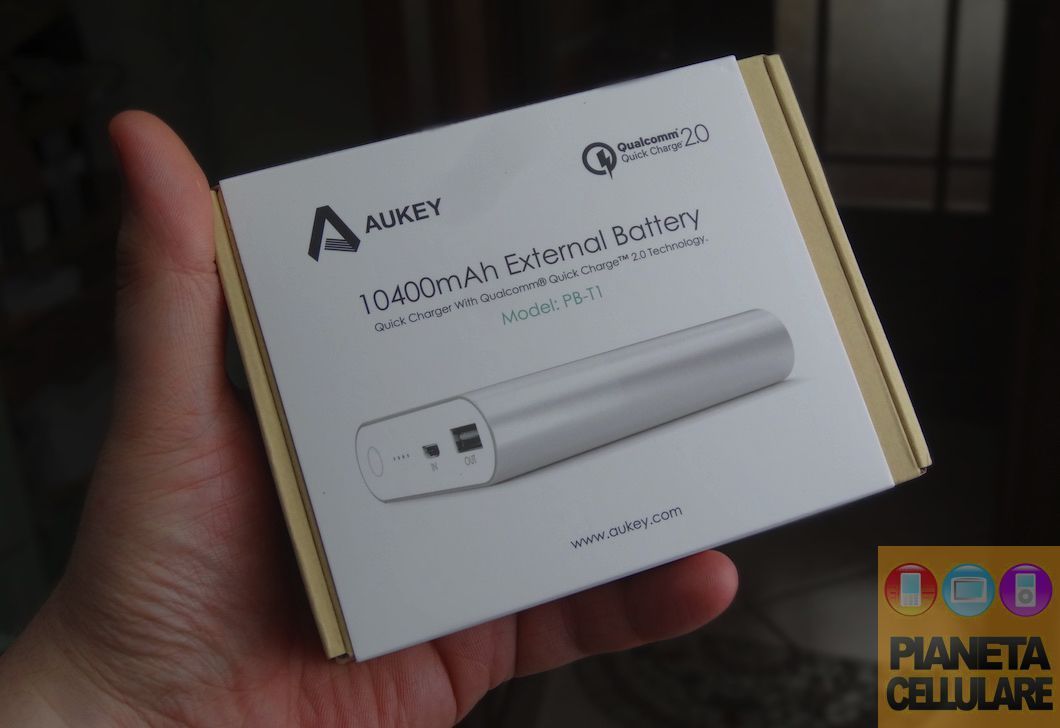 L’accessorio in questione è realizzato da Aukey (modello PB-T1) ed offre ben 10.400 mAh che possono essere sfruttati anche con la ricarica rapida di Qualcomm in versione 2.0.