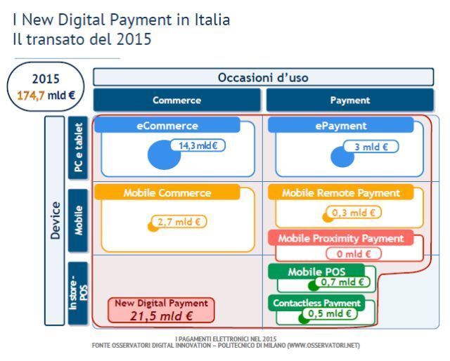 Lo sviluppo di tecnologie di pagamento sempre più semplici, sicure ed immediate unite al cambio di interazione tra utenti ed esercenti, sta spingendo al rialzo le transazioni dgitali che nel 2016 toccheranno quota 26 miliardi di euro di transatto in Italia.