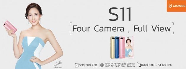 Gionee S11 arriva ufficialmente (come confermato da Gionee Thailand) con un display FullVision AMOLED da 6 pollici di risoluzione 1080×2160 pixel e un chipset octa-core con clock fino a 2,5 GHz assieme con 6 GB di RAM e 64 GB di memoria interna. Anche Gionee M7 monta un display FullVision da 6.1 pollici di risoluzione 1080×2160 pixel pertanto potrebbe essere lo stesso con aspetto di rapporto 18:9. Il comparto fotografico del Gionee S11 offre configurazioni dual-camera sia di fronte che sul retro, per un totale di quattro sensori. In particolare, nella parte posteriore si trova una coppia di sensori da 16 MP e 5 MP e sulla parte frontale una coppia da 16MP e 8MP.