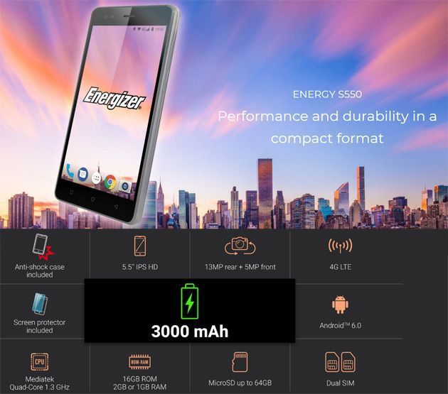 Energizer ha lanciato nuovi smartphone per le linee Power Max, Hardcase ed Energy: Power Max P600S, Power Max P550S, Hardcase H550S, Hardcase H240S, Energy S550.