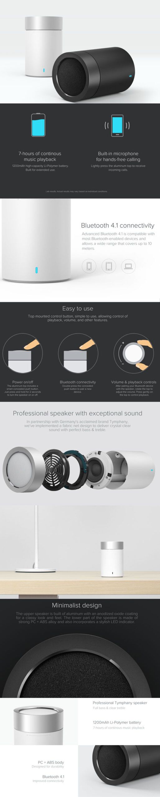 In partnership con il brand tedesco Tymphany, Xiaomi ha implementato nel Mi Pocket Speaker 2 componenti hardware per offrire un suono nitido con gestione ottimizzata dei suoni alti e bassi. La parte superiore in alluminio include un pulsante smart che si puo’ tenere premuto per 2 secondi per accendere/spegnere l’altoparlante. Lo stesso pulsante puo’ essere premuto due volte per avviare l’accoppiamento dello speaker con un dispositivo bluetooth. E’ poi possibile ruotare la parte alta dello speaker per alzare/abbassare il volume o premerla per gestire la riproduzione (avvio/pausa). Sono presenti anche dei microfoni per poter rispondere alle chiamate in arrivo.