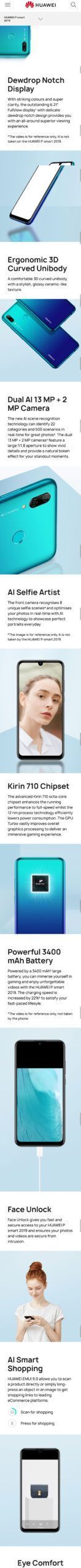 Huawei P Smart (2019) propone un display TFT LCD LTPS da 6.21 pollici FullView di risoluzione FHD+ (1080×2340 pixel, 415ppi) con ratio 19.5:9 e viene alimentato da una batteria da 3400mAh (autonomia di 25 ore in conversazione) e da un chipset HiSilicon Kirin 710 con otto core (4x CortexA73 a 2.2GHz + 4x Cortex A53 a 1.7GHz) con 3GB di RAM mentre lo spazio di memoria interna ammonta a 64GB (espandibile fino ad ulteriori 512GB tramite lo slot per scheda microSD).