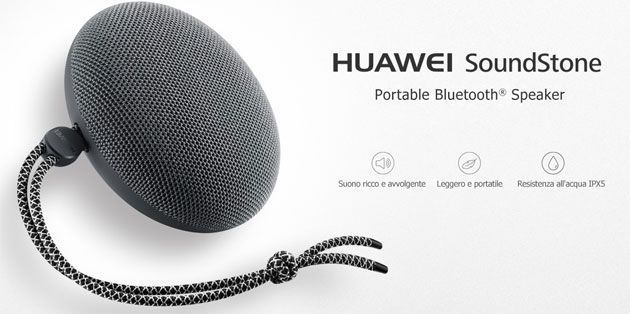 Dal 10 gennaio 2019 al 10 febbraio 2019 inclusi è attiva l’operazione a premi denominata “HUAWEI P SMART 2019” tramite la quale, chi acquista un nuovo Huawei P smart 2019, puo’ richiedere in regalo un Huawei SoundStone del valore di 59,90 euro. Huawei SoundStone è uno speaker bluetooth portatile con design ergonomico con pulsanti integrati ispirato ai ciottoli e ha un rivestimento in tessuto intrecciato di dimensioni 100x100x42mm che pesa 190 grammi e ha un driver magnetico al neodimio (NdFeB), un diaframma ad elevata sensibilità, distorsione armonica inferiore all’1% e consente di personalizzare le frequenze. E’ resistente all’acqua IPX5 e al sudore. Grazie alla tecnologia di soppressione del rumore cVc 6.0 e al microfono incorporato ad alta sensibilità permette di effettuare chiamate in vivavoce con chiarezza. La batteria ai polimeri di litio da 700mAh offre più di 8.5 ore di riproduzione e può essere ricaricata completamente in meno di 3 ore.