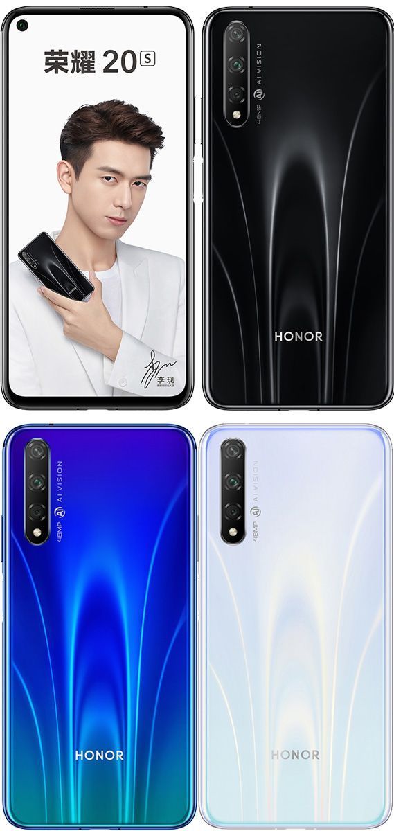 Honor 20s viene proposto in Cina nelle varianti di memoria 6GB RAM + 128GB ROM al prezzo di 1899 CNY (circa 240 euro) e con 8GB RAM + 128GB ROM al prezzo di 2199 CNY (circa 280 euro). Tre le varianti di colore proposte: Nero, Blu e Bianco.