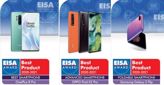 La European Imaging and Sound Association (EISA) ha annunciato i vincitori dell’edizione 2020-2021 dei suoi premi annuali EISA Awards che vanno ai migliori prodotti disponibili sul mercato. A noi interessa di più la categoria dei prodotti mobile, con diversi smartphone che sono stati premiati, tra cui OnePlus 8 Pro come miglior Smartphone, Oppo Find X2 Pro come miglior Smartphone Avanzato, Huawei P40 Pro come Smartphone con la migliore fotocamera, Samsung Galaxy Z Flip come miglior smartphone pieghevole, e Sony Xperia 1 II come miglior smartphone multimediale.
