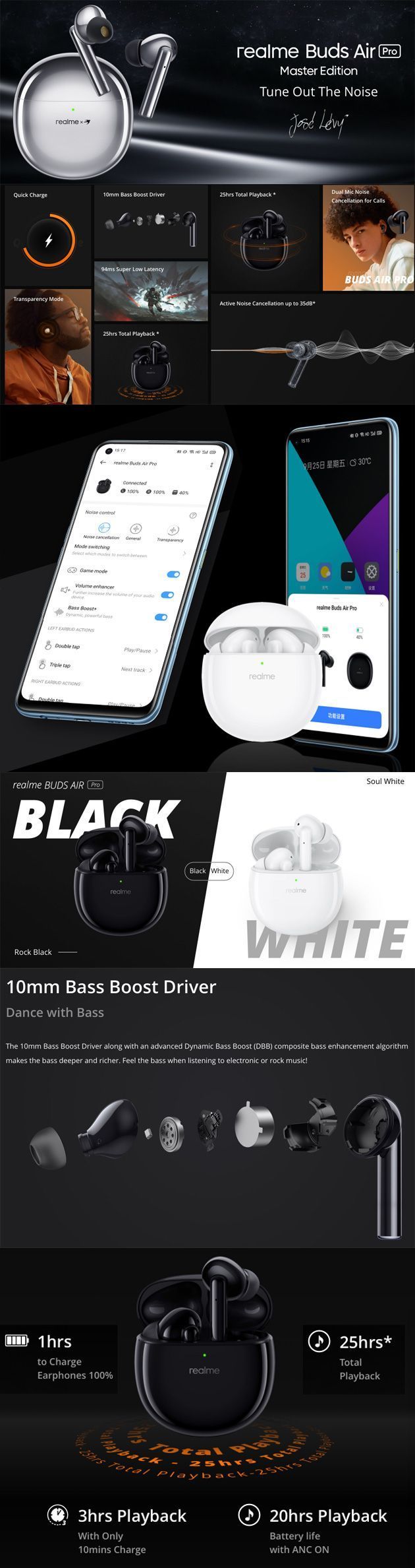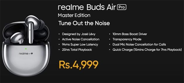 Realme ha, infine, annunciato la versione ‘Pro’ degli auricolari completamente wireless Realme Buds Air, annunciati un anno fa. Il nuovo modello ha la firma di Jose Levy e offre: cancellazione attiva del rumore fino a 35dB, chip R1 personalizzato con bluetooth 5.0, codec audio AAC e SBC, cancellazione del rumore con doppio microfono durante le chiamate, autonomia fino a 25 ore in riproduzione, Super Low Latency di 94ms (con modalità Game attivata). Bass Boost Driver da 10mm, supporto per l’Assistente Google sullo smartphone, resistenza all’acqua IPX4.