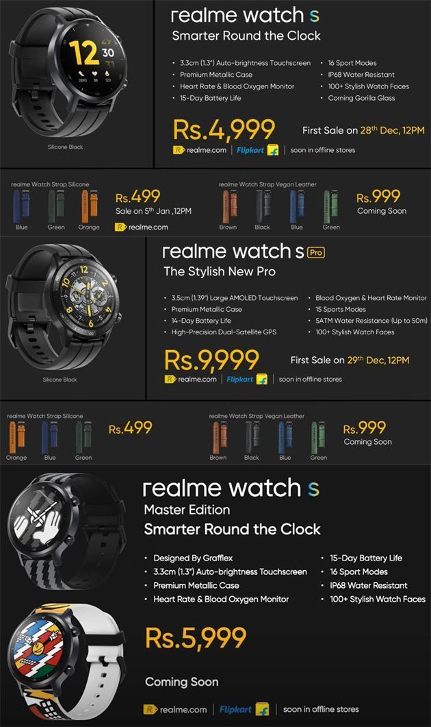 Il Realme Watch S Master Edition è un Realme Watch S con cinturini e quadrante progettati dall’artista coreano Grafflex. Il prezzo è di 5,999 INR (67 euro circa).