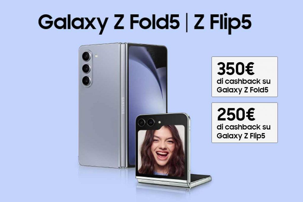 Nel caso di acquisto di un Samsung Galaxy ZFold5, il valore del rimborso sarà di 350 euro. Nel caso di acquisto di un Samsung Galaxy Z Flip5, invece, il valore del rimborso sarà di 250 euro.