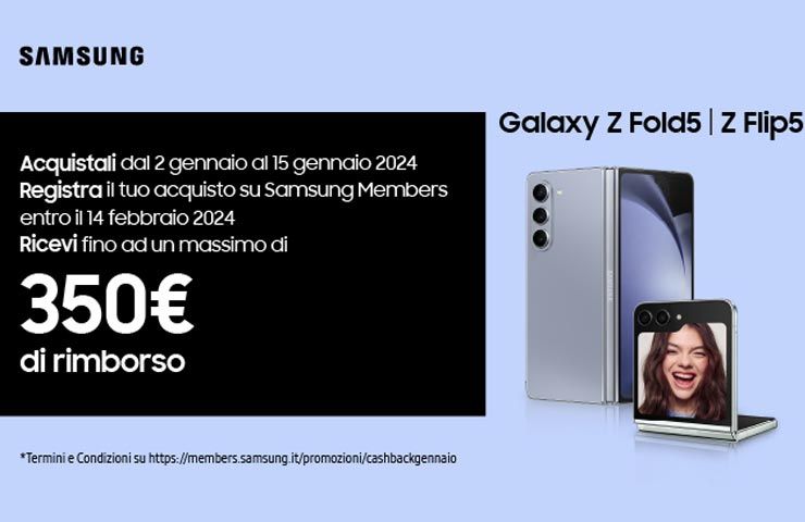 Per iniziare al meglio il 2024, Samsung Italia ha attivato la nuova iniziativa speciale attraverso la quale i clienti che acquistano un nuovo pieghevole tra modelli selezionati possono ricevere fino ad un massimo di 350 euro di rimborso. Scopriamo quali sono i prodotti promozionati e come partecipare.