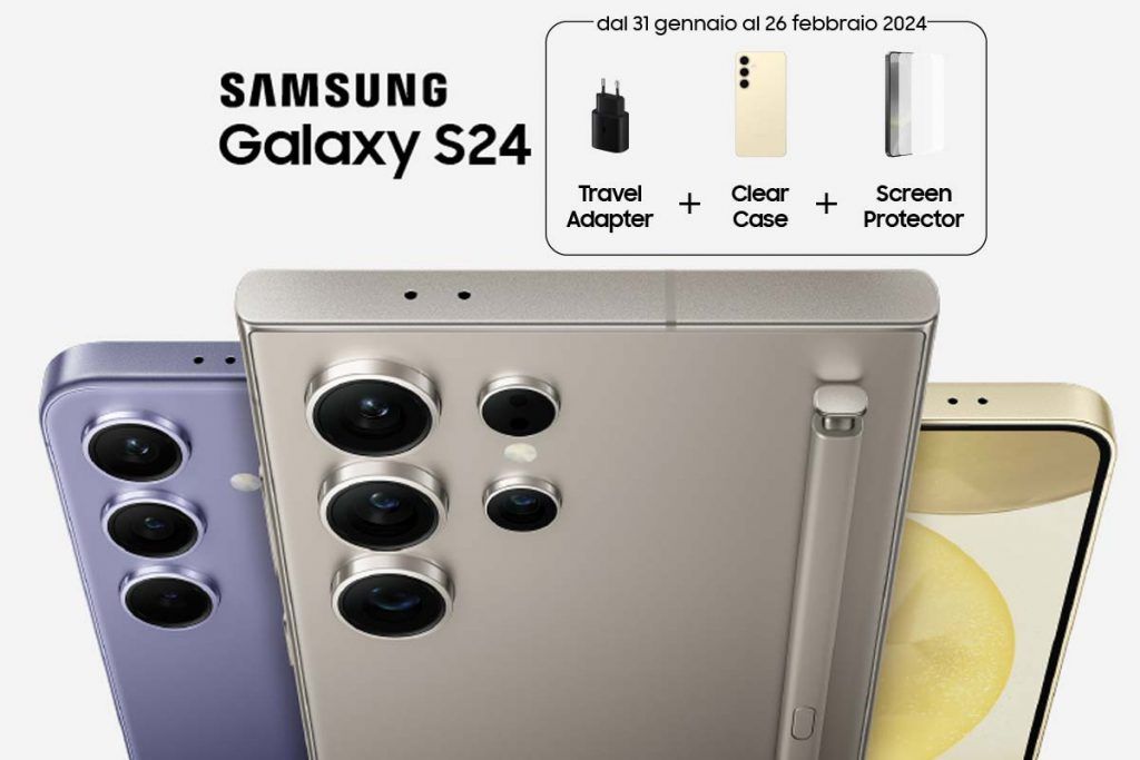 Cover, Travel Adapter e Screen Protector i regali con i nuovi Galaxy S24