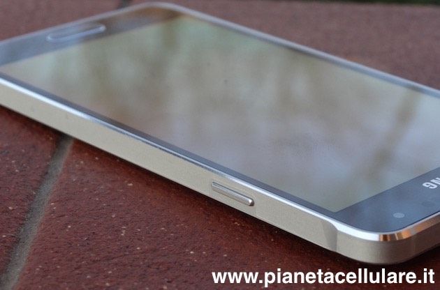 Nella parte anteriore del prodotto troviamo un display da 4,7 pollici HD 1280 x 720 pixel (312 ppi) che adotta la tecnologia Super Amoled ed introduce per la prima volta in uno Smartphone un vetro di tipo Gorilla Glass 4 e che quindi dovrebbe offrire una buona resistenza, sensore di luminosità e prossimità, LED di notifica RGB, tasti indietro e Multitasking retro-illuminati, tasto Home fisico che nasconde anche un lettore delle impronte digitali e fotocamera da 2,1 megapixel.