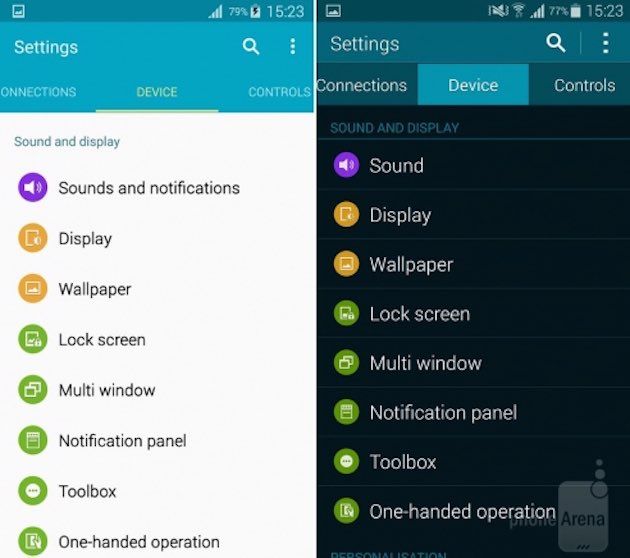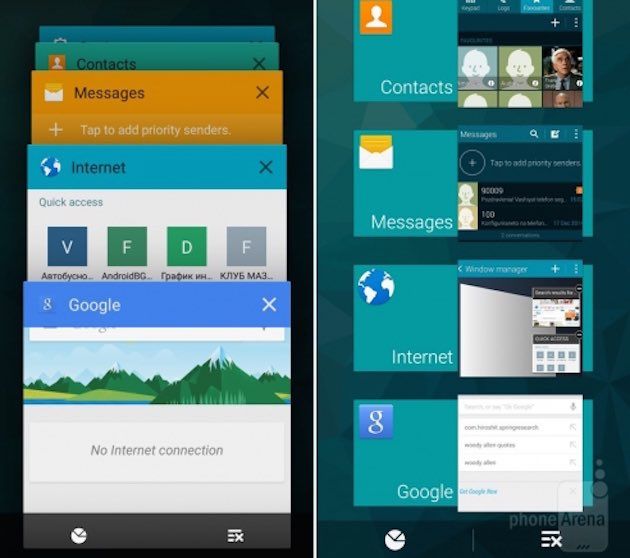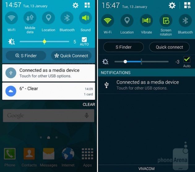 I colleghi di PhoneArena hanno realizzato questi interessanti screenshoot che mettono a confronto l’interfaccia Touch Wiz con Android 4.4 Kit Kat sulla destra e con Android 5.0 Lollipop sulla sinistra.